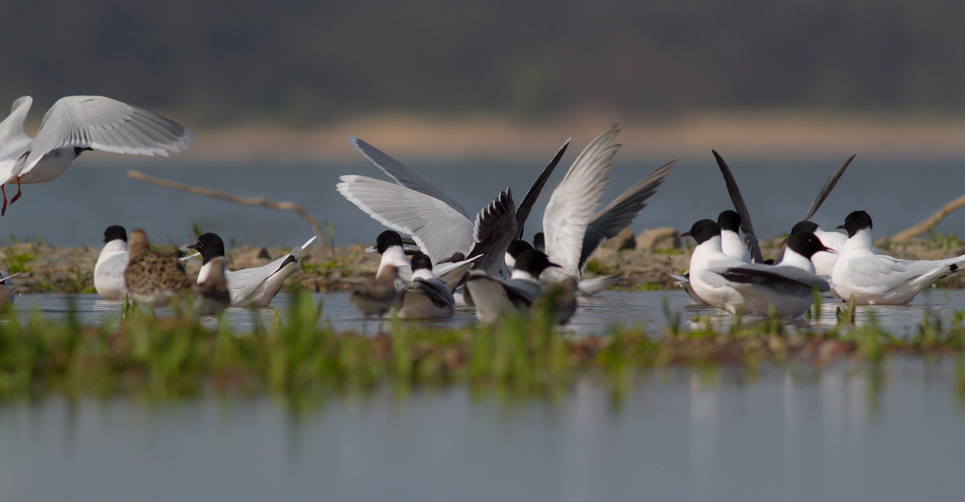 23 04 2015 Kwiatków - dorosłe (adultus), z lewej śmieszka, z prawej rybitwa czarna